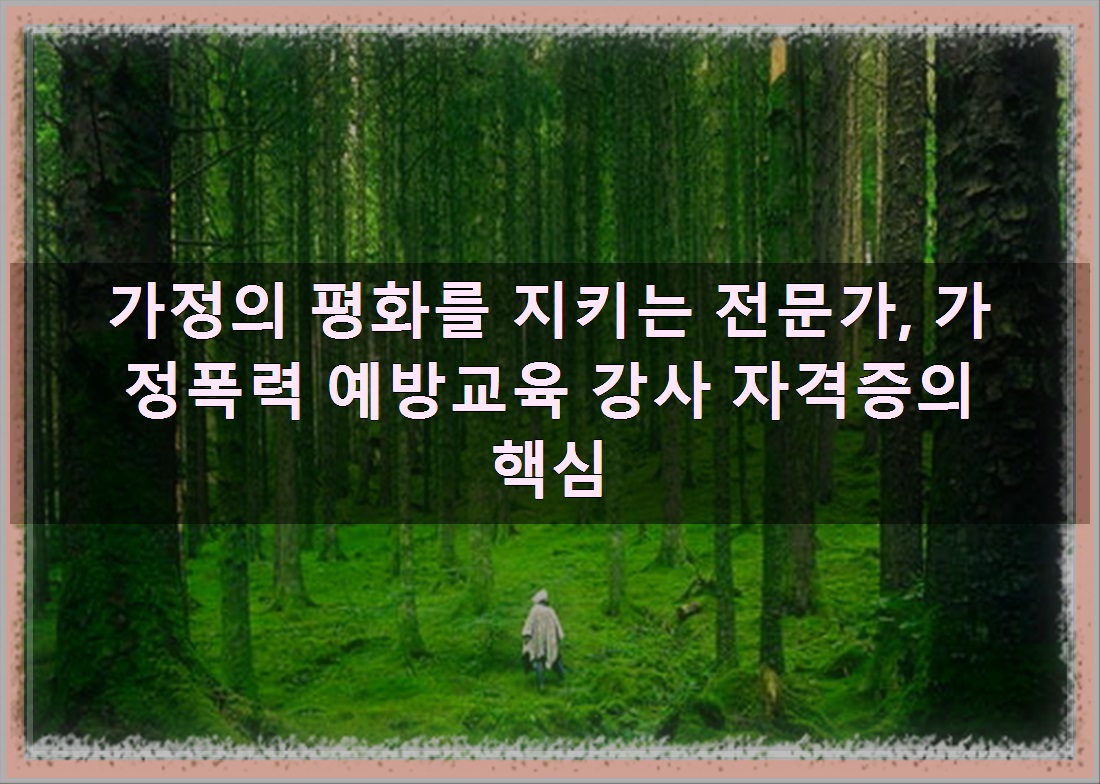 정리해드린 내용은 가정의 평화를 지키는 전문가, 가정폭력 예방교육 강사 자격증의 핵심 알아보았습니다. 도움이 되셨길 바랍니다.