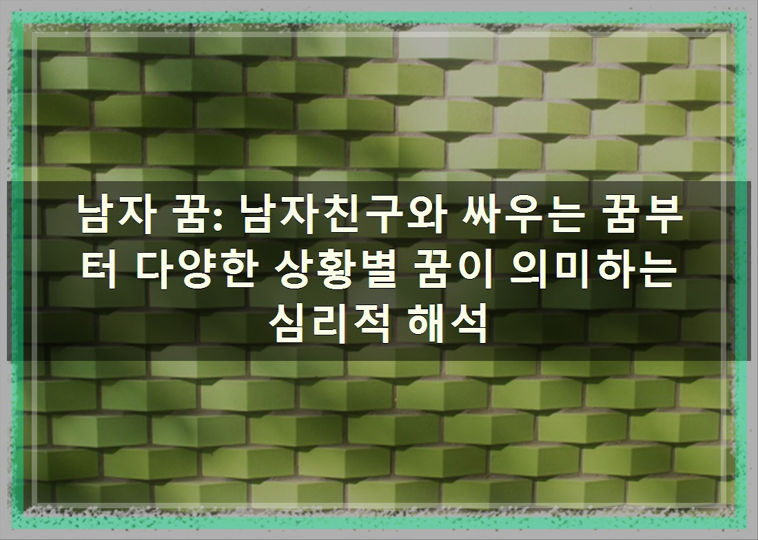 사랑하는 사람과의 관계는 때로는 기쁨과 행복을 주지만, 때로는 갈등과 불안을 동반하기도 합니다. 특히 남자친구와의 싸움을 꿈속에서 경험하는 것은 현재 관계에 대한 깊은 고민이나 불만을 반영하는 심리적 표현일 수 있습니다. 최근 관계에 어떤 변화가 있었거나, 혹은 말 못 할 스트레스가 쌓여있을 가능성을 시사하는 것이죠. 역설적으로 이러한 꿈은 남자친구에 대한 깊은 애정과 관심이 있기 때문에 나타날 수 있습니다. 그렇다면 꿈속에 나타나는 다양한 '남자'의 모습들은 어떤 의미일까? 함께 꿈의 세계를 탐험하며 숨겨진 메시지를 파헤쳐보도록 해요~ 그럼 아래 바로 확인해 보실까여?