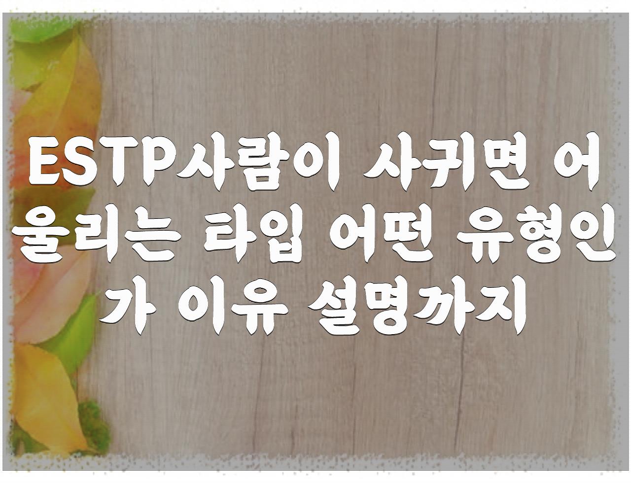 포스팅 해드린 글은 ESTP사람이 사귀면 어울리는 타입 어떤 유형인가 이유 설명까지 관련입니다. 조금이라도 도움이 되셨길 바랍니다.