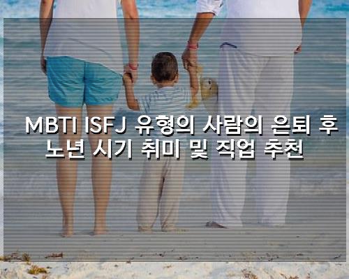 포스팅 해드린 글은 MBTI ISFJ 유형의 사람의 은퇴 후 노년 시기 취미 및 직업 추천 입니다. 찾으셨던분께 좋은 내용이 되셨길 바랍니다.